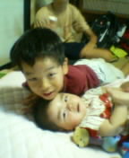 @かあちゃんの実家。じゃれる従兄弟どもと。