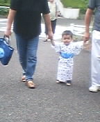 行くの! たいちの通う保育園で夏祭りが開催された。ゆかたを着てお祭りに向かうたいちさん。つかまった宇 …