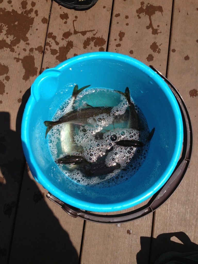 3人でアジ6尾。 釣れなかったら、昼メシ抜きになるところだった(ホッ☺)。