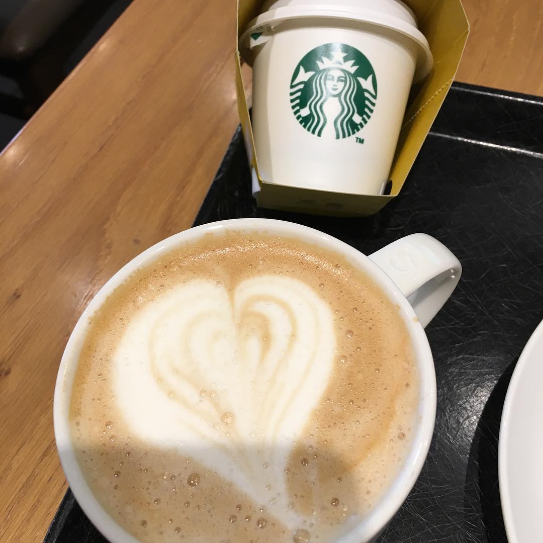 ラテアート(ちょとハート)ぽい。新発売のプリンと。
